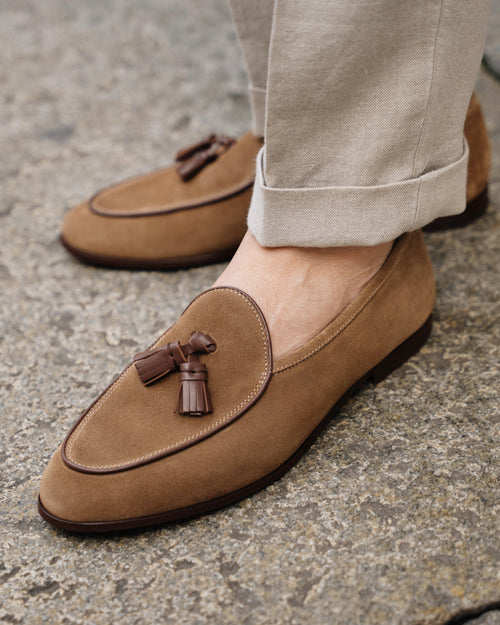 Montclair | Penny Loafer – Rich Tobacco Brown Suede Leather with Rubber Lug Sole & Fine Stitching -